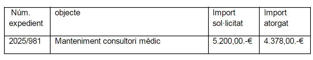 En compliment de la base quinzena de les que regulen les subvencions que atorga Dipsalut – Organisme de Salut Pública de la Diputació de Girona pel finançament de les despeses derivades del funcionament ordinari i per inversions en equipaments de consultoris locals ubicats a la demarcació de Girona.